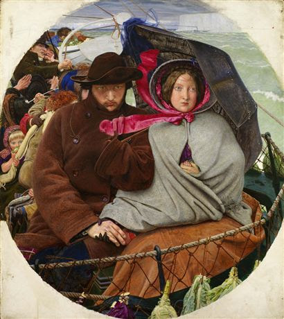 A similar idea was shown in the pictures by Millet - “Procession of Joseph,” the “Ploughmen” and an effective and wonderful work entitled “Leaving England,” [sic - “The Last of England” by Ford Madox Brown ] on which the artist labored years to bring an acute sense of tragedy to the face.